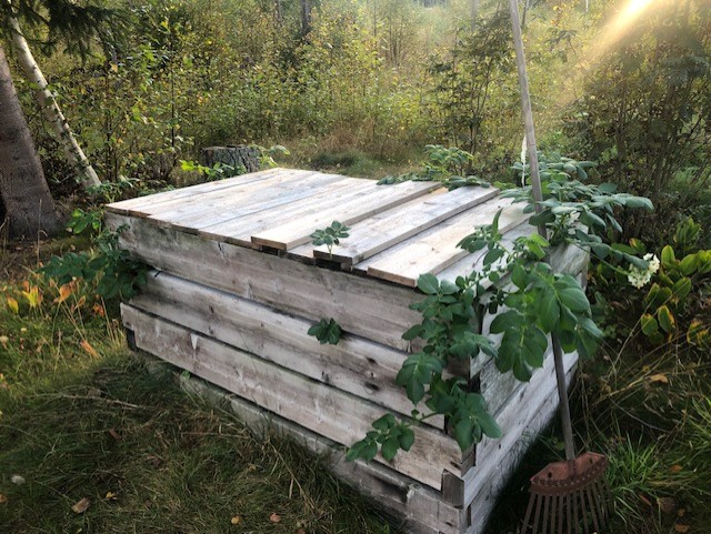 I Trolllkarlstjärn har vi en trädgårdskompost som går att förbättra mycket och det ska göras, tex att ha fler fack så att komposten kantiga orörd och mogna under några år medan de andra facken fylls upp.