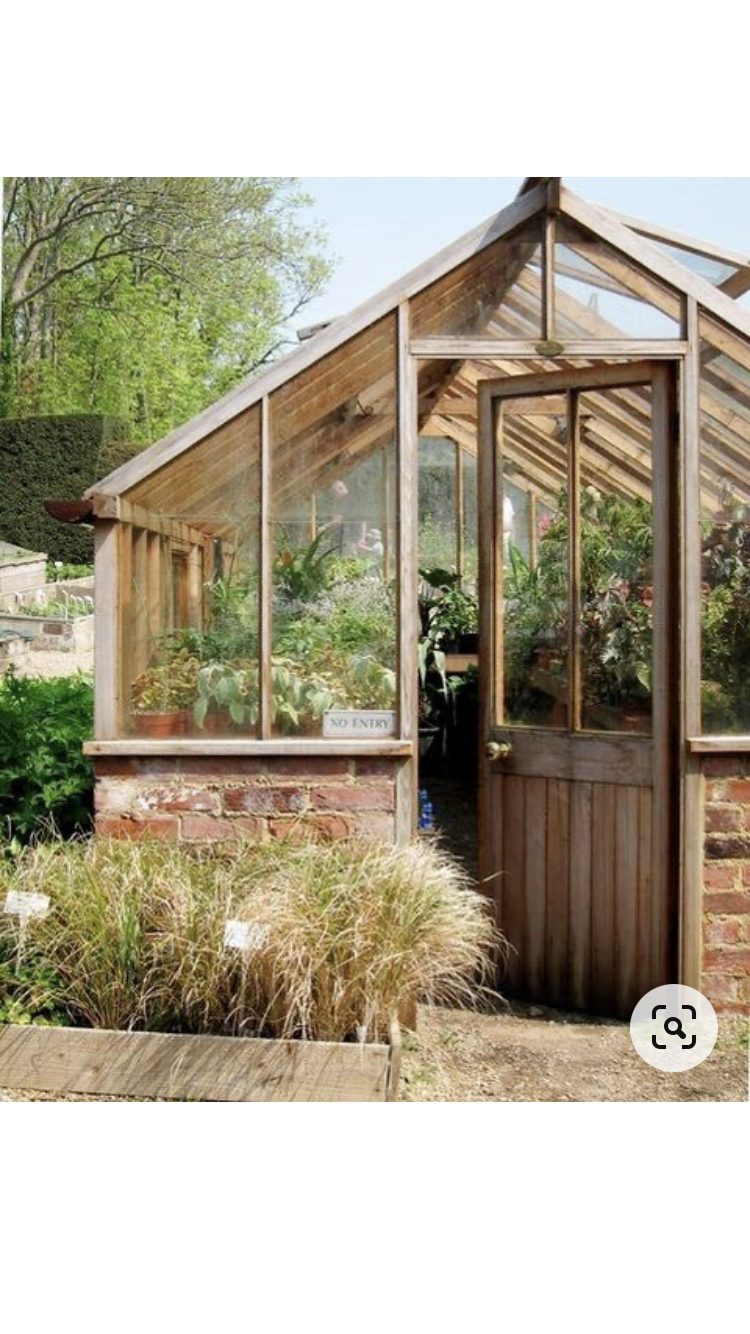 Daniel har sedan många år tillbaka drömt om att bygga ett växthus med tegelstenssockel. Det är himla fint och jag är också mest sugen på det. Det kan dessutom vara bra att inte ha glas ända ner ifall snön trycker på eller eventuella stenskott. Det kan också lagra lite värme, särskilt om man har en hel vägg som är murad och som vi kanske ska ha på norrgaveln. Bilden är en inspirationsbild, och något åt det hållet tänker vi oss, dock inte så högt murat.